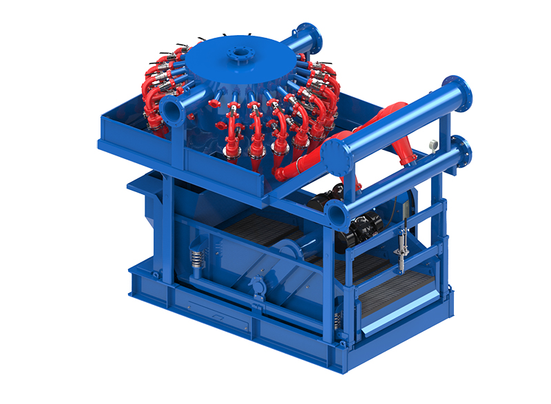 钻井泥浆经泵送进入圆顶舱体,高频振动筛进行一级分离处理>74μm粗颗粒,旋流器组离心分离5-74μm细固相,先除砂在除泥,净化后泥浆返回循环系统,钻屑通过螺旋输送机或排砂口集中处理。
